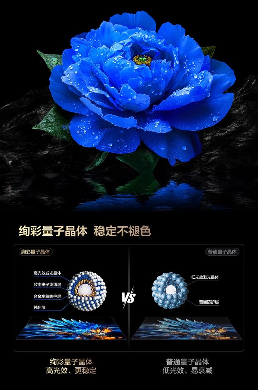 此外,TCL T7L系列将XDR 1600nits升级为绚彩XDR 2200nits,TCL Q9L系列将XDR 2400nits升级为绚彩XDR 4500nits,峰值亮度的持续时间延长数倍,能够更好地呈现真实世界的亮度效果。最新的量子点Pro 2025,从量子点材料到色彩算法实现全面升级,让显示画面更加真实地还原现实世界,真正做到十亿原色屏,十年色彩依旧出色。