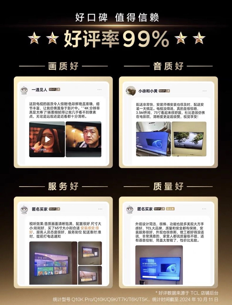 回想去年,T7K和Q9K两款产品一经发布,凭借低价高配的强大实力,成为了市场上的爆款,直接把同档次的竞争对手甩在了身后。两款产品合计销量达到50万台,还双双斩获了同价位Mini LED销量和销额双冠军,用户好评率也超过了99%。就算到现在,这两款依旧在选购Mini LED电视的用户心中占据一席之地,依然是大家争相推荐的“必选项”。