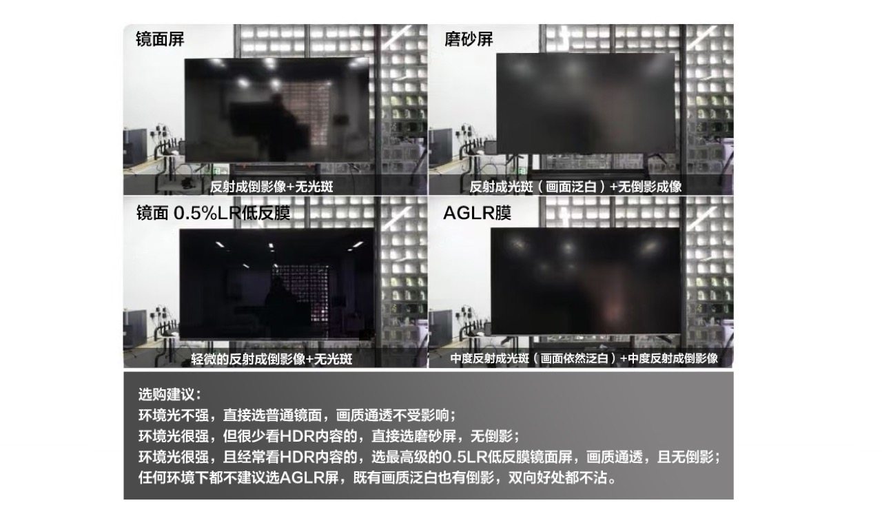 大家都知道,屏幕是画质好坏的关键所在,一块高对比的屏幕可以更加发挥于Mini LED电视画质的优势。T7L Pro系列和Q9LPro系列采用的蝶翼星曜屏,可以说是Mini LED电视的黄金搭档。这块屏原生对比度高达7000:1,是普通IPS屏的5倍,控光效果更好,暗态显示也更佳,最关键的是采用0.5%LR低反膜+89°规则排布的液晶分子实现了内外双低反,能有效降低屏幕反光,等于说现在看电视再也不用担心太阳光、灯光等各种干扰啦,无论是看电影还是打游戏,都能享受到清晰且纯净的画面画面。