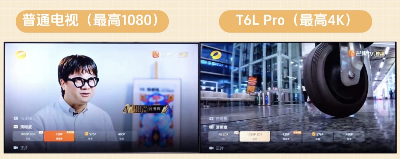 更重要的是,灵控系统3.0在内容生态上也进行了深度优化。对于爱奇艺、芒果TV等主流平台,只要你是会员,T6L Pro就能播放真正的4K超清资源,而不是像一些低端电视那样只跑个720P、1080P,画质看着差一大截。这种细节的优化,才是真正拉开体验差距的地方。
