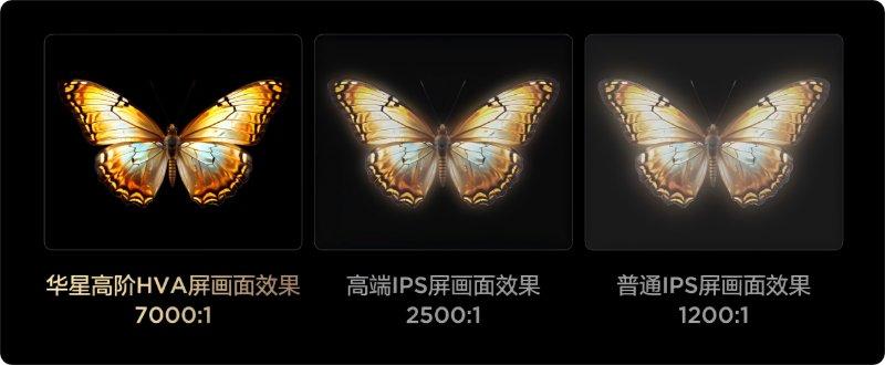 以T6L Pro搭载的蝶翼星曜屏为例,这块屏幕属于华星高阶HVA屏,让T6L Pro实现了7000:1超高原生对比度,较普通IPS屏的1200:1提升5倍以上,不仅能够提升色彩明暗层次,同时还能有效解决传统屏幕常见漏光和光晕问题,完美还原传统电视暗场画面中“肉眼不可见”的细节。