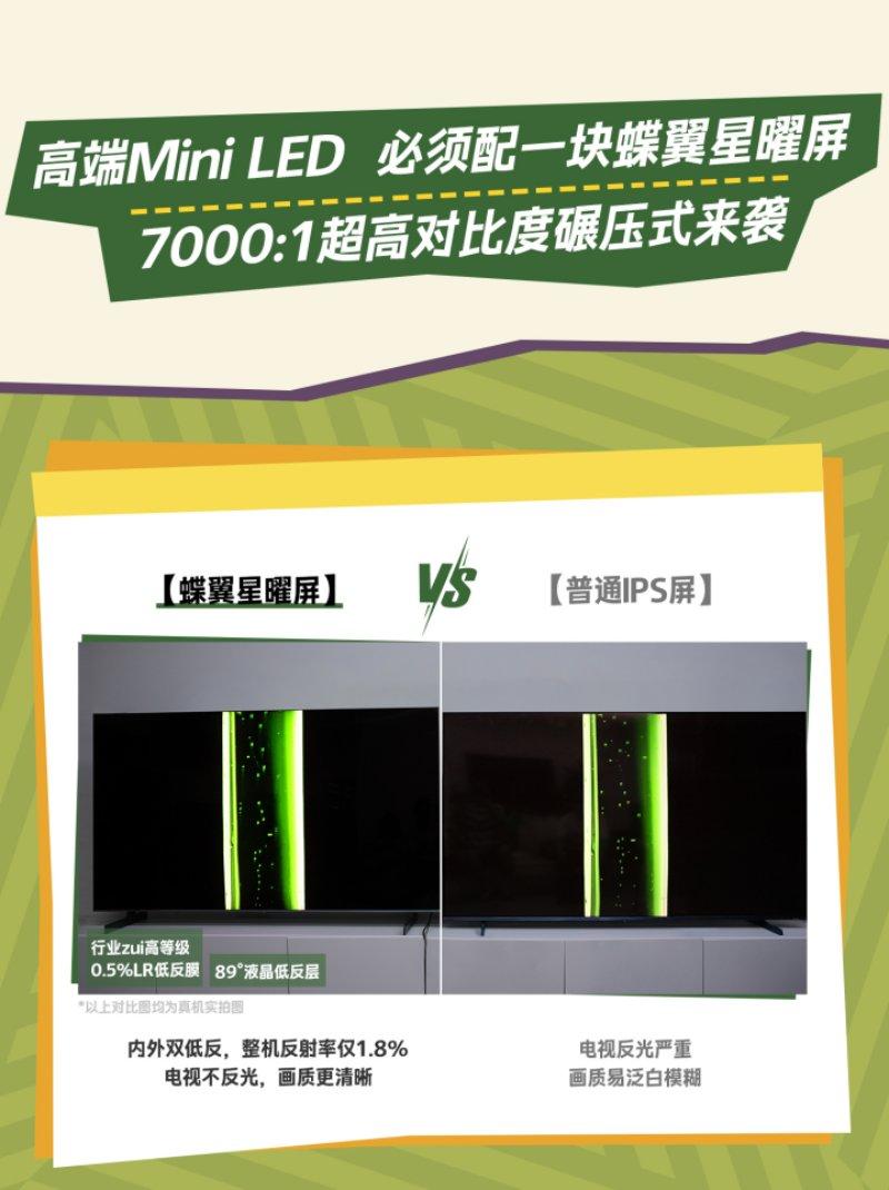 首先,最值得炫耀的就是它的屏幕。去年搭载在万元级电视上的华星的蝶翼星曜屏,现在竟然搭载在了T6L Pro这台3千多的电视上。蝶翼星曜屏是拥有超高对比度且搭载最佳低反方案的高端HVA屏,通过“蝶翼状”液晶分子排列实现超高的7000:1原生对比度,让Mini LED的绝佳画质得以充分展现,让画面上的黑既能真正黑得下去,也能保留原本的细节展现。这种才叫解决实际问题的技术,懂行的发烧友首选!