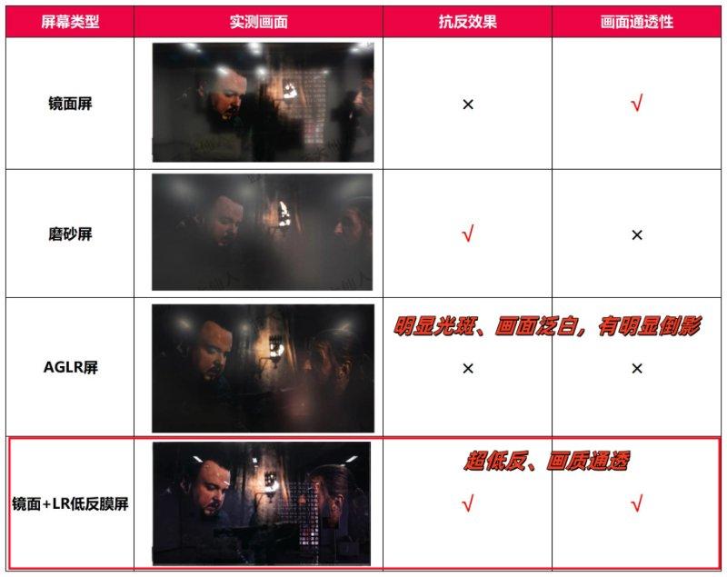 我单说没用,可能很多人都不相信。那就来看看某大博主的对比测评:相同的画面,在不同屏幕上的差距肉眼可见!从这个实测结果看,要抗反光和高画质俩手抓的,选镜面低反屏准没错,也就是我家这款电视所采用的方案,光线再强也不怕,能把其他屏幕狠狠甩在身后!而像大家经常听到的AGLR屏,不仅有光斑、画面泛白,还带有明显倒影,观影体验直接崩盘,买了等于花钱找罪受,真的不建议选!