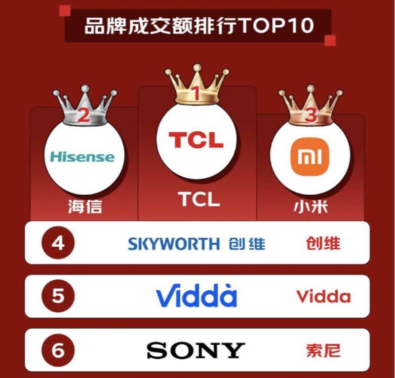 而TCL这份“为专业而发烧”的匠心,也在市场上收获了耀眼成绩。在刚刚结束的618 大促中,TCL以强劲的品牌实力拿下成交额TOP1。这份亮眼成绩,是无数用户用真金白银投出来的,不仅是消费者对TCL品牌的信任,更是对今年备受关注的T6L Pro专业品质的高度认可。