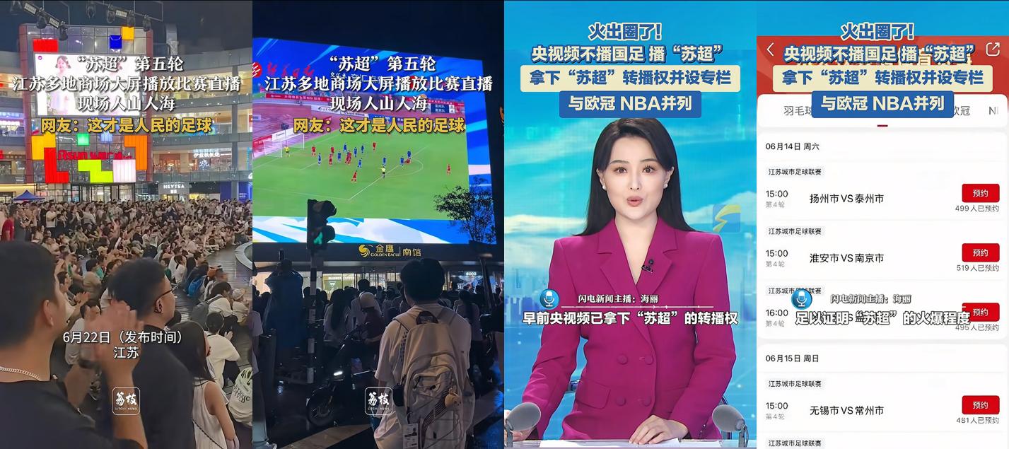 7月5日晚,江苏省城市足球联赛(简称 “苏超”)的 “江苏一哥” 巅峰战点燃了全网热情 —— 南京对阵苏州的 “内战” 不仅把 #南京 vs 苏州 #话题推上微博热搜 4300 万阅读量,更让央视频App专门开设 “苏超” 栏目全场次直播,热度直逼中超。南京奥体中心 6 万观众座无虚席,门票一票难求的盛况,足以见得这场本土赛事的魅力。