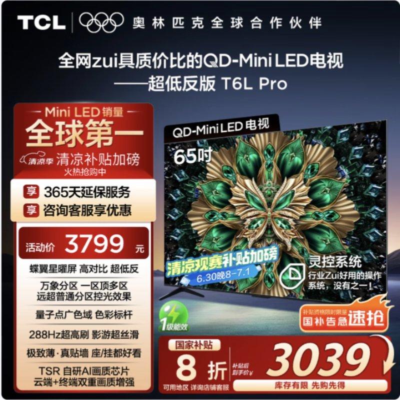 不过,这家庭影院也并非随便就能打造的,需要从多个方面进行考虑,尤其是在最核心的显示设备选择上,一旦选错,不仅投入的资金打了水漂,观影体验更是大打折扣。不过,我发现,国产彩电品牌TCL推出的T6L Pro电视就是个不错的选择,作为全球专业的家电品牌,TCL可一直是电视行业的“技术担当”和销量榜首,上半年全球电视出货量前二,全球Mini LED出货量第一,这款T6L Pro不仅搭载了万元旗舰级的抗反屏幕和控光技术,关键是价格还亲民,入手价打到了3k出头,极大降低了人们享受高品质观影体验的门槛,真正做到花小钱办大事。