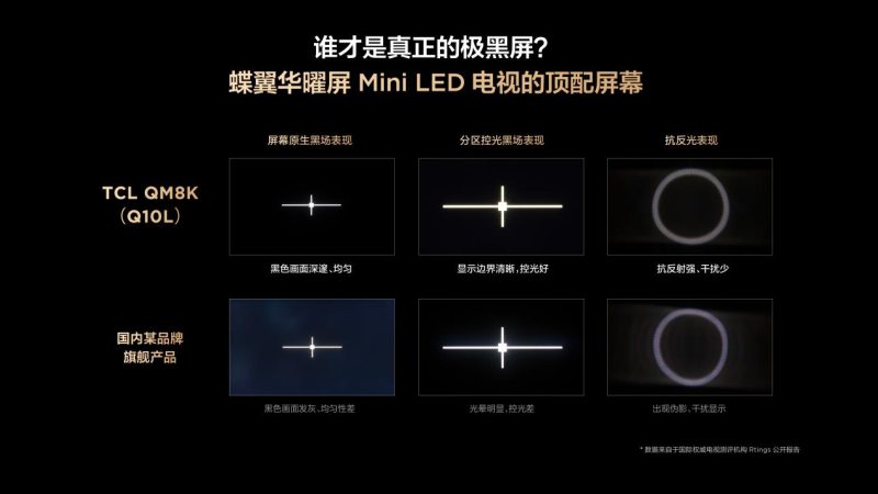 国际权威评测机构Rtings的测试结果也印证了这一点:TCL凭借万象分区技术在黑色均匀性上拿下9.9分,近乎满分,而某大牌旗舰即便堆砌了更多分区数量,也仅获得7.9分。这背后的差距,是体验对参数的完胜,也是核心技术最直接的体现。