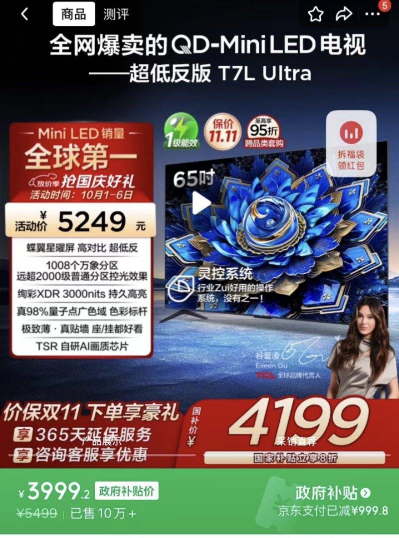 国庆宅家本想把半年错过的剧全补回来,尤其是正火的《赴山海》,可家里老电视却成了“绊脚石”。坐沙发上能看见屏幕里自己的影子,正午阳光一照画面泛白到看不清演员表情,晚上开客厅灯又映满灯光倒影,最后只能憋屈用手机小屏看。直到去朋友家串门,才发现他家TCL 的T7L Ultra能彻底解决了这些问题,这台电视的每一项配置都精准戳中了我对追剧电视的需求,全是实打实的干货,感兴趣的朋友往下看。