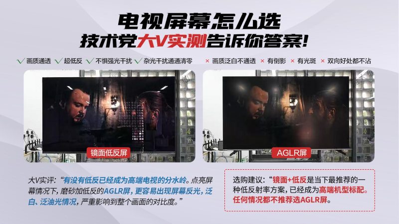 许多人在选购电视时,常被“抗反光”一词误导,误以为所有方案都能兼顾清晰与防眩。殊不知,市面上不少同价位产品采用的AGLR方案,本质是给屏幕贴上一层“视觉磨砂膜”——它以牺牲画面通透度为代价来模糊反光。结果便是,反光虽有所减弱,整体观感却如同隔着一层毛玻璃,画面发灰,细节丢失,实则为一种对画质的“妥协方案”。