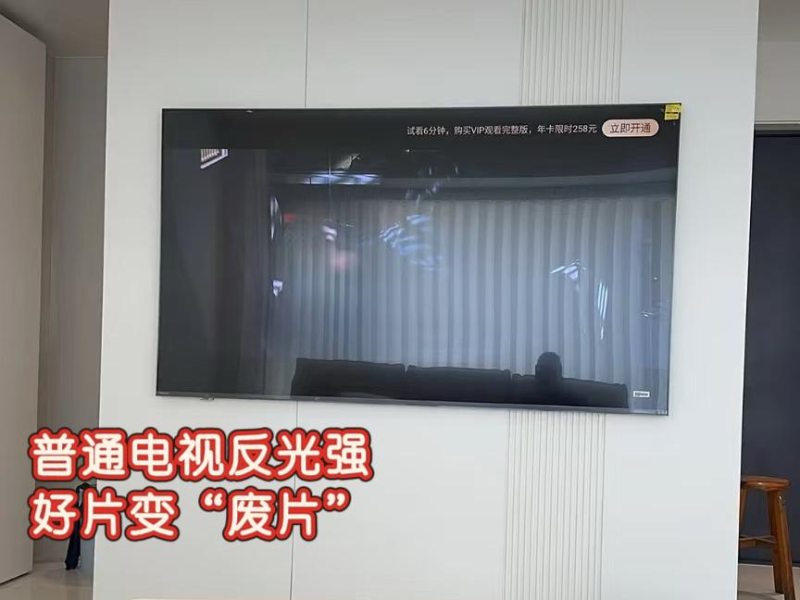 首先,最绝的要数T7L Ultra的抗光能力,堪称阳光房反光杀手。没有抗反光方案的普通电视反射率一般为5.6%,而普通所谓的“抗反光电视”,大多勉强控制在2.6%左右,而市面上常见的磨砂屏或是好点的磨砂低反屏,虽一定程度上抑制了镜面反射,却因光线散射导致画面泛白、透光率下降,清晰度反而大打折扣。