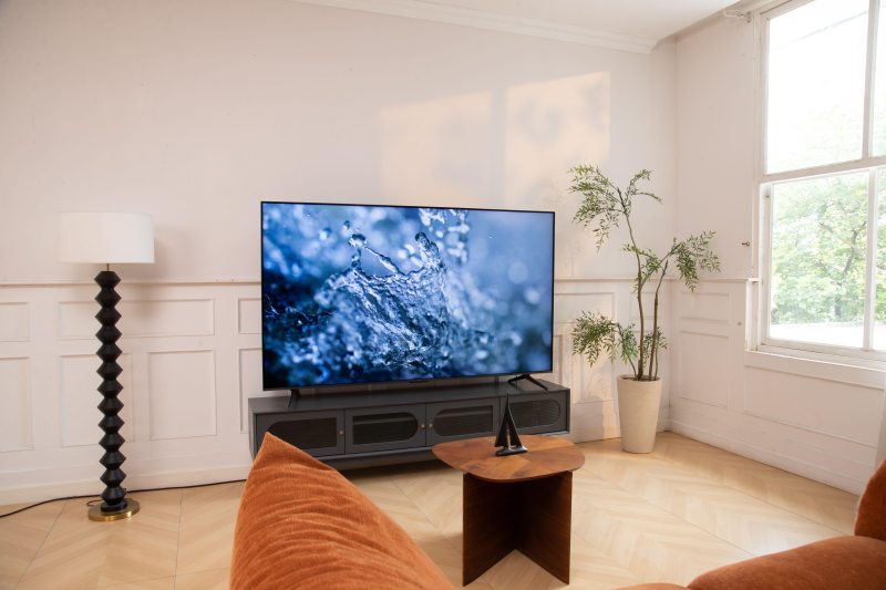 在外观设计上,T7L Ultra的机身采用超薄一体设计,最厚处也不到60mm,比同价位的电视薄了20%还多。这样的厚度让它能够真正贴墙安装,轻松适配现代极简风、新中式风格等多种家居风格。不仅好看,这台T7L Ultra还能帮你“省钱”,它支持DTMB地面波信号接收功能,只要花杯奶茶钱买一根地面波天线,就能免费看央视、地方台,平时看电视绝对够用,直接省掉各种电视会员费!
