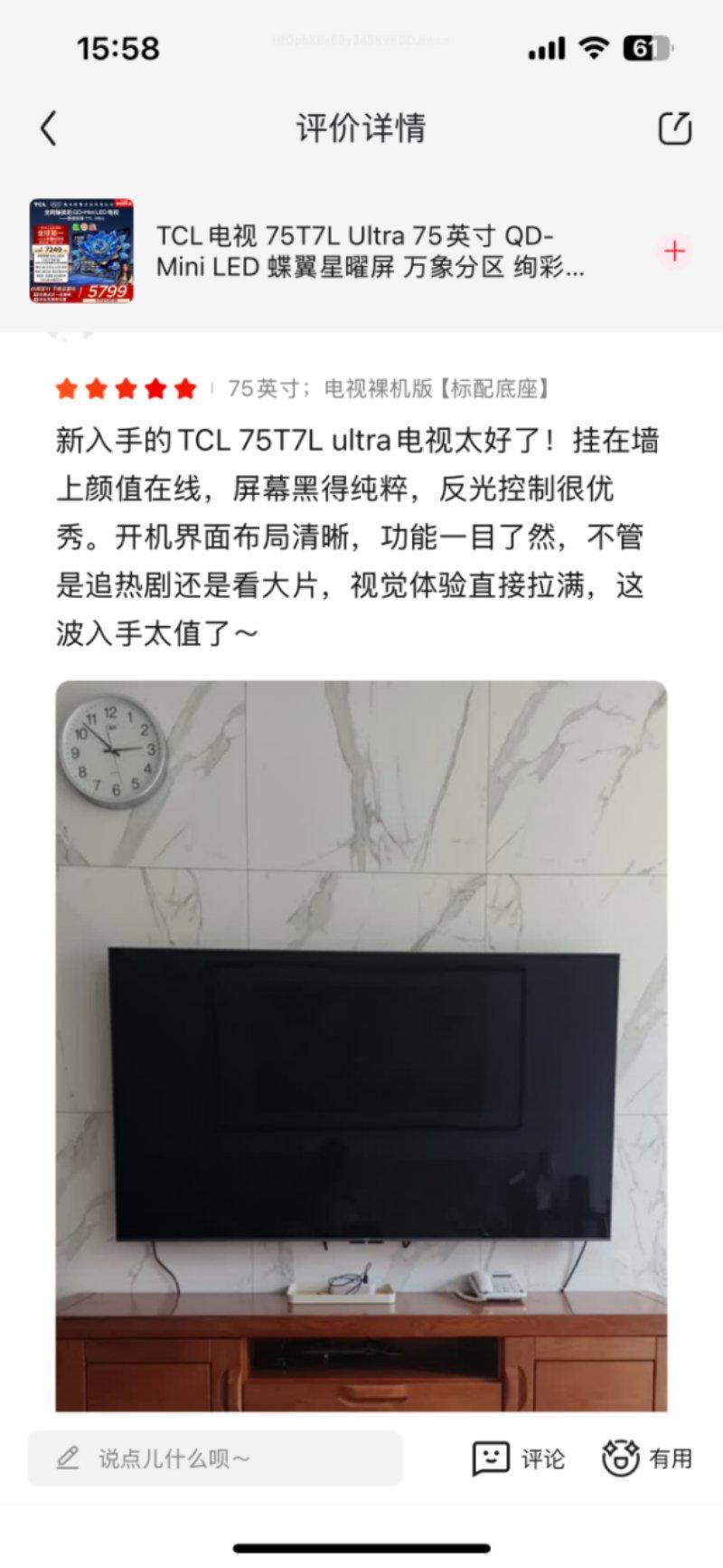 TCL T7L Ultra选择了一条更艰难但更彻底的技术路径——镜面低反方案。其搭载的蝶翼星曜屏,外层覆盖了行业最高等级的0.5% LR低反膜,并创新性地加入了89°液晶内低反结构,这套组合拳将整机反射率压制在惊人的1.8%,远低于AGLR屏常见的2.6%。这微小的百分比差距,带来的却是体验上的天壤之别。它意味着用户终于可以从“迁就环境光”的观影习惯中解放出来。下午在西晒的客厅窗边看电视剧,屏幕上不再有烦人的窗户倒影;晚上开着温馨的暖光灯享受紧张剧情,画面也不会因为灯光而泛白失真。正如一位用户所说的“反光控制很优秀,屏幕黑得纯粹”,这句朴实的反馈,背后是TCL从材料科学到屏幕结构一整条技术链的坚实突破。