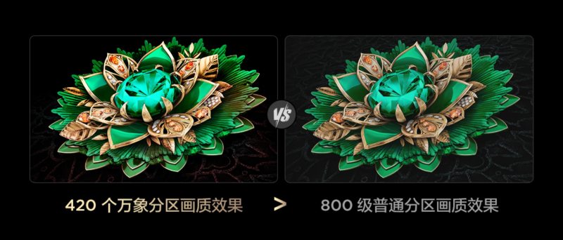 事实上,在画质的衡量标准中,对比度犹如画质的骨架,色彩则是画质的血肉,两者的强强联合才能获得更强的画质,并且对于不少人而言,对比度的冲击力和敏感度甚至比色彩更强,而Mini LED技术的诞生本质上就是为了提升对比度,这背后的关键因素则是背光分区,不仅要看分区数量,更要看其底层技术的好坏。