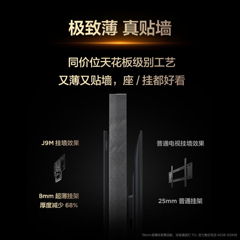 电视作为客厅的视觉中心,其设计美学同样至关重要。告别传统电视的笨重形象,TCL J9M以“极致薄”的设计理念,重新定义了电视与家居环境的关系。